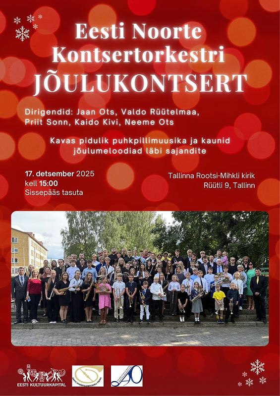 Eesti Noorte Kontsertorkestri jõulukontsert Kolmapäeval 17. detsembril kell 15. 00 Tallinna Rootsi-Mihkli kirikus Eesti Noorte Kontsertorkestri jõulukontsert. Eesti Noorte Kontsertorkestri jõulukontsert