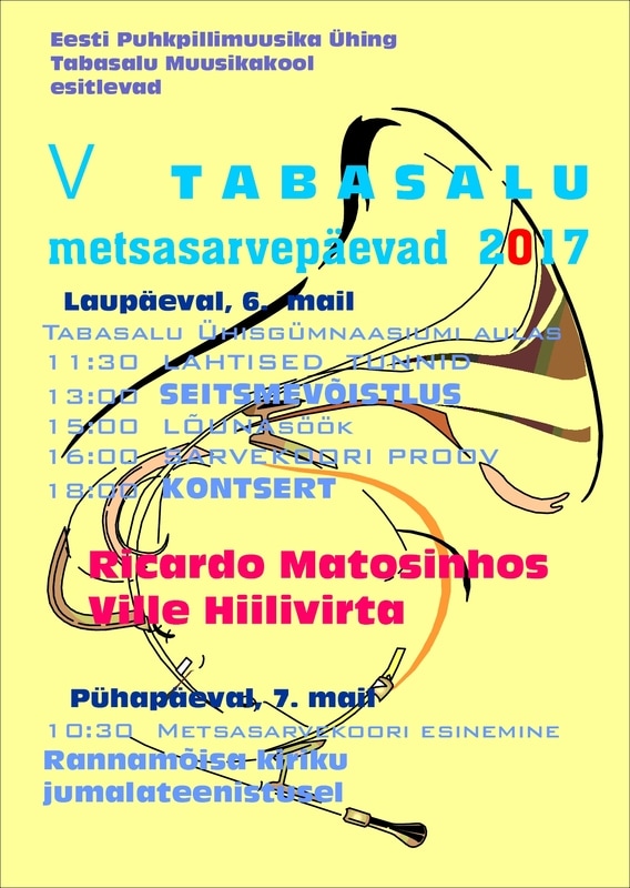 ( jpg 0,1Mb) 6.-7. mail 2017 Tabasalu Muusikakoolis V Tabasalu Metsasarvepäevad.Tervituskontsert 6. mail kell 11.00