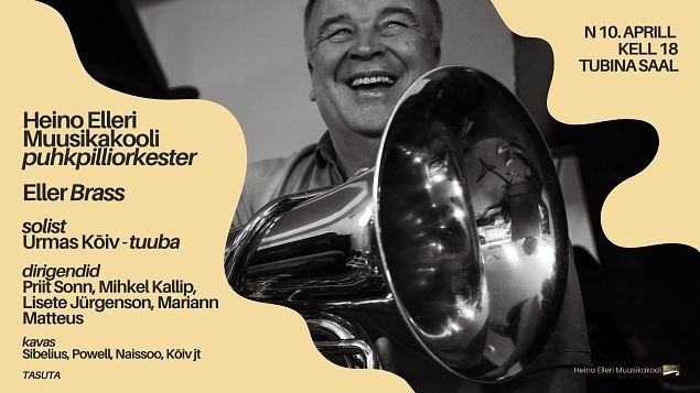 10. aprillil kell 18.00 Tartus Tubina saalis puhkpillimuusika kontsert. Esinevad Heino Elleri Muusikakooli puhkpilliorkester ja Eller Brass. Tuubasolist Urmas Kõiv.