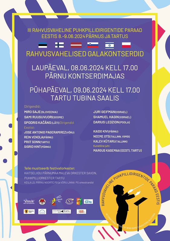 III Rahvusvaheline Puhkpillidirigentide Paraad Laupäeval 8. juunil kell 17. 00 Pärnu Kontserdimajas ja pühapäeval 9. juunil kell 17. 00 Tartu Tubina saalis Rahvusvahelised Galakontserdid. III Rahvusvaheline Puhkpillidirigentide Paraad Eestis - Tartus ja Pärnus